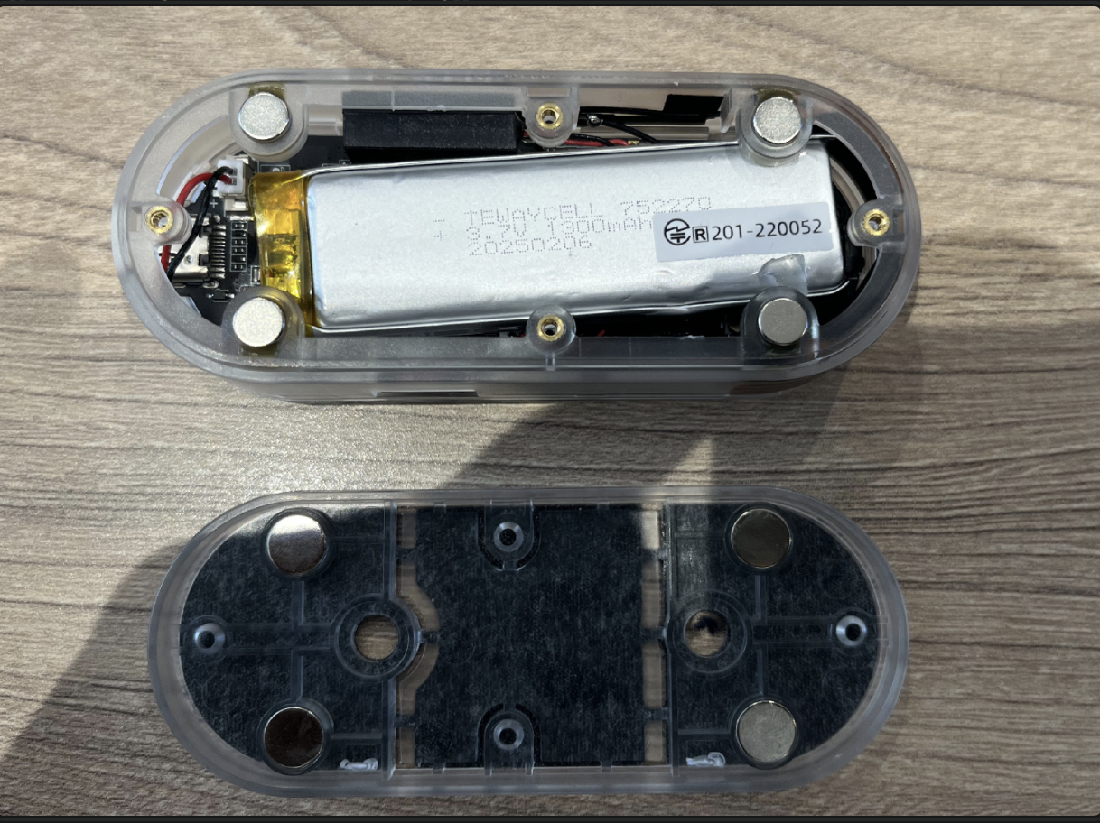- Battery: 3.7V 1300mAh LiPo with BQ25896 charger and BQ27220 fuel gauge