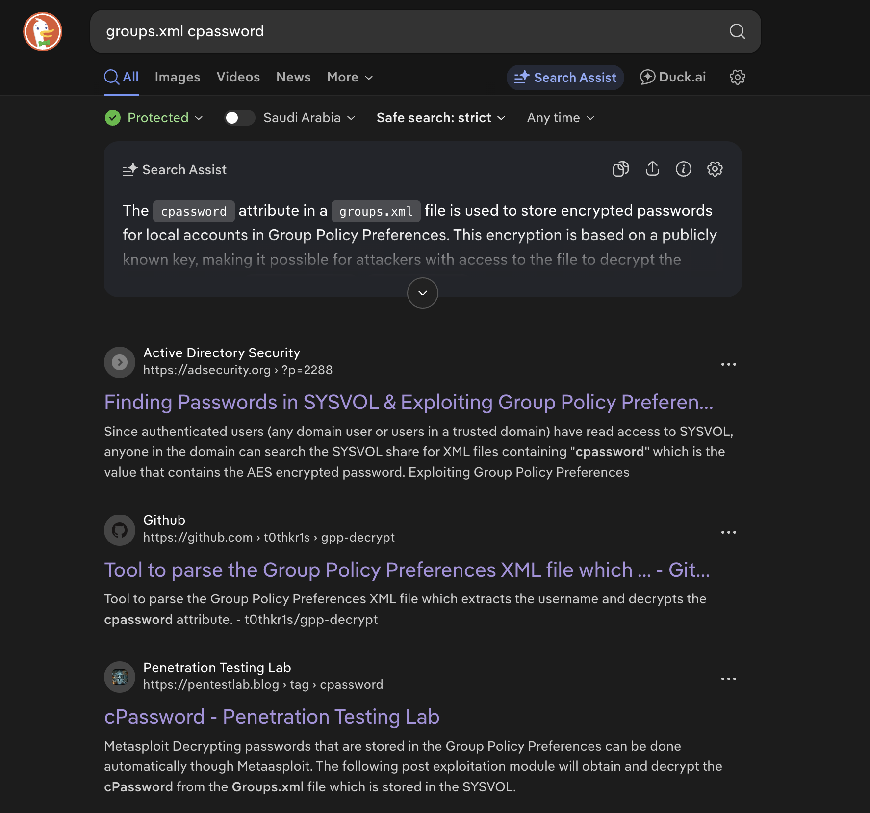 After some research, we find that the cpassword field is associated with storing encrypted versions of local accounts’ passwords from Group Policy Preferences (GPP).