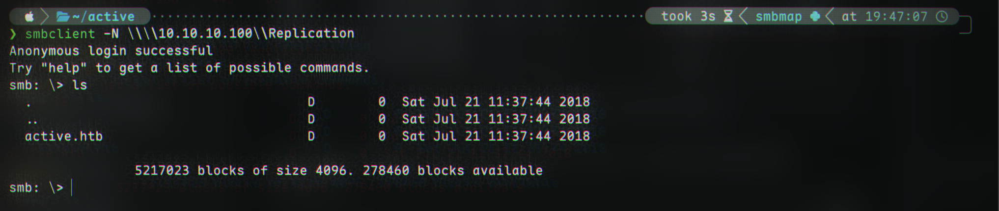 The only share we have access to is named Replication. Let’s try connect with smbclient: