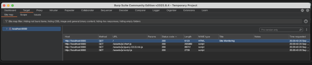 section on Burp, we can see many requests to /assets