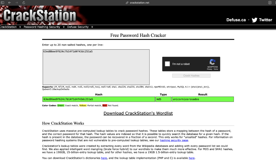 We can decrypt the hash with CrackStation