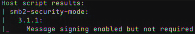 We are looking for output indicating that SMB signing is disabled or not required, for instance: